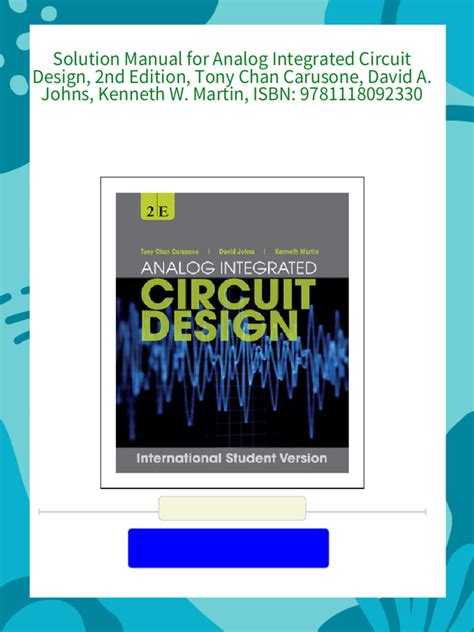 Analog Integrated Circuit Design 2nd Martin Solution Reader By Click Button. Analog Integrated Circuit Design 2nd Martin Solution it’s easy to recommend a new book category such as Novel, journal, comic, magazin, ect. You see it and you just know that the designer is also an author and understands the challenges involved with having a good book. You can easy klick for detailing book and you can read it online, even you can download it